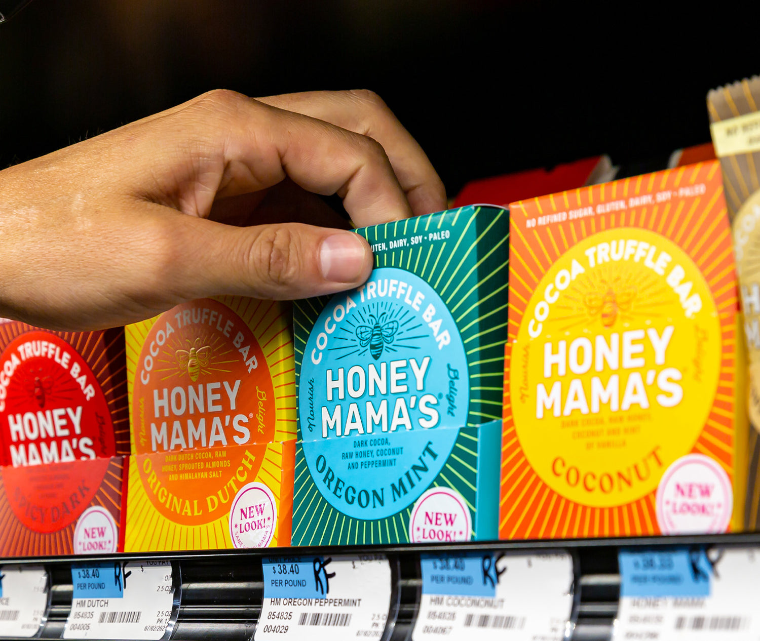Two years later, Christy debuted her line of honey-sweetened truffle bars at the Portland State Farmers Market. Within a few months, Honey Mama’s began selling on grocery store shelves.